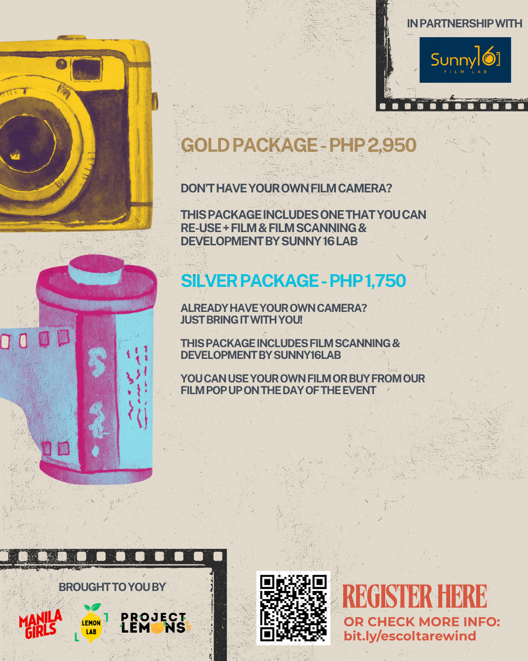Your day begins with a Film Photography 101 session with special guest Yane Estrada, followed by a Manila heritage talk by Manila Girls, and a guided photowalk capturing the unique charm of Escolta’s historic streets.